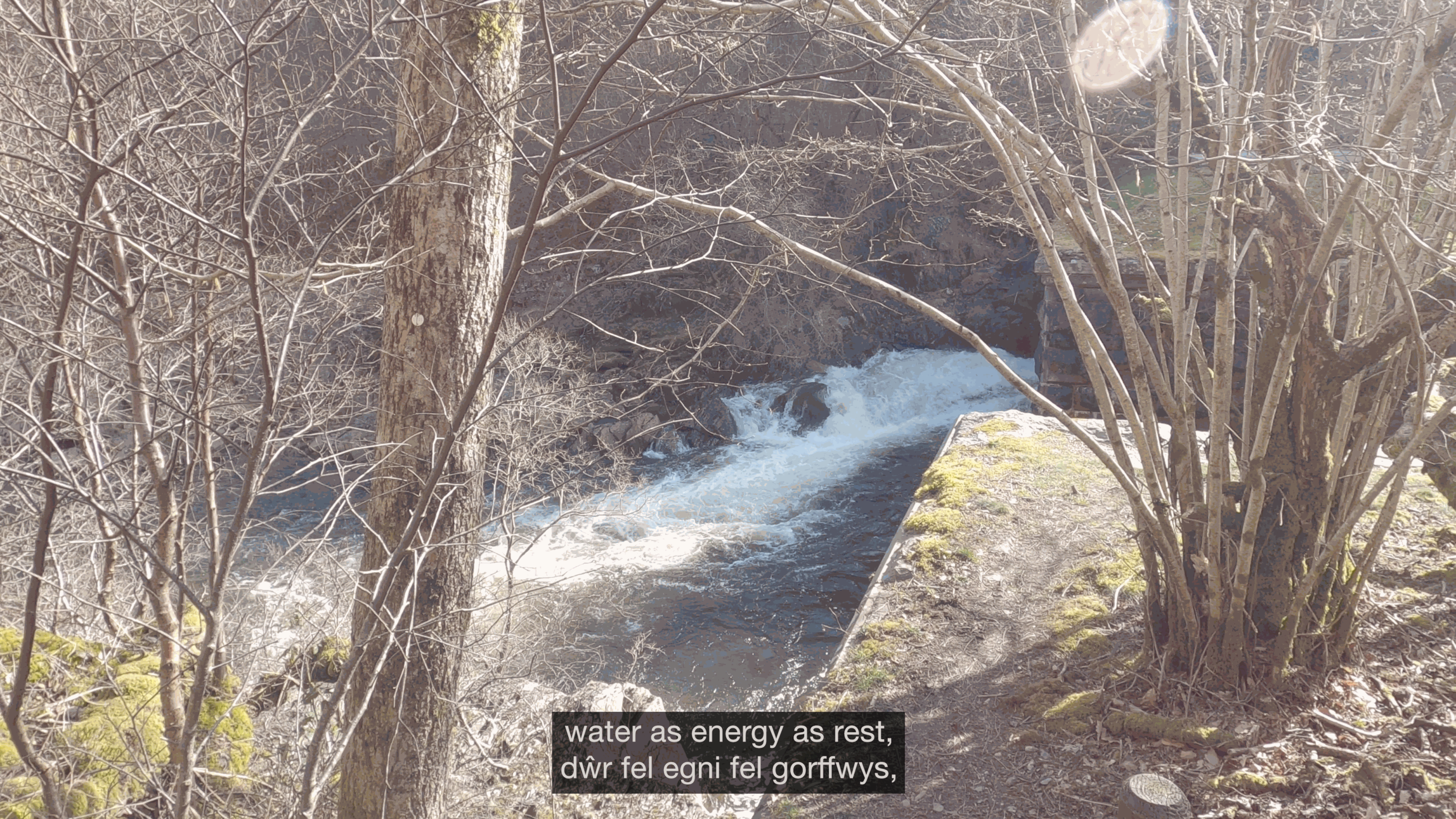 The artwork spans two formats - an accessible, public audio trail available at Elan Valley, and a moving-image work. The moving-image work is currently on view at the group show Watershed at MAC, with an online screening and in person screening in November 2023.