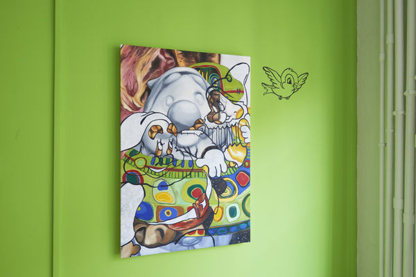 “The main themes that run through my work are The 90’s, The North, colour, cartoons, satire and feminism. I would say that the former five mediate the manner in which I discuss the latter as they are all quite jovial.