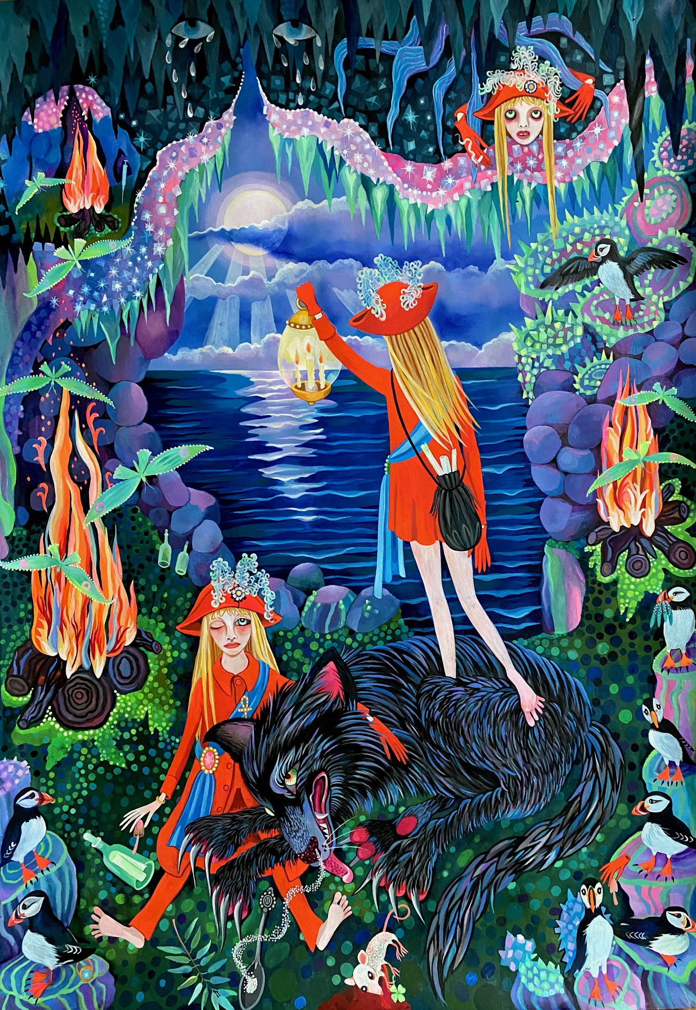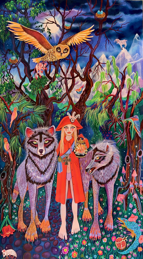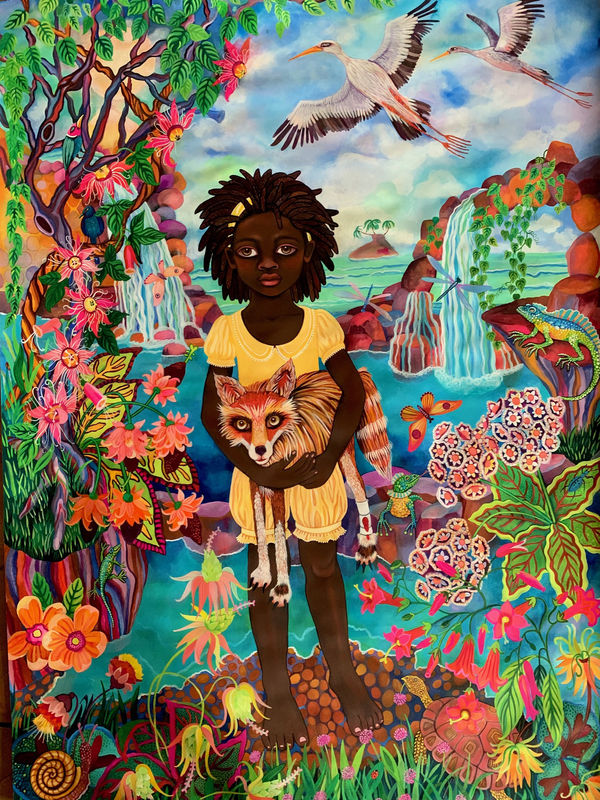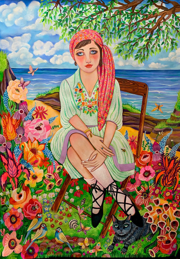 Her works brighten my feed, with luscious surreal scenery, expressive almond eyed figures, and a beguiling sense of mystery and the dream of purely intuitive works. As her instagram handle suggests, Downie is not formally trained, starting her painting career seven years ago.