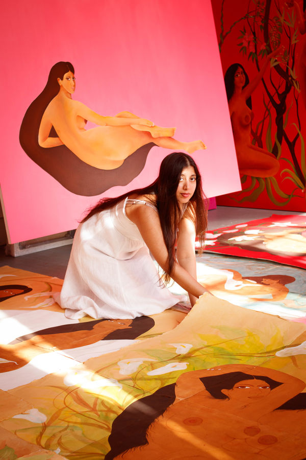 The iconic shots of Schahbaz’s painting in her New York studio first attracted me to her works. Trained in centuries-old Indo-Persian painting technique, Schahbaz’s works challenge perspectives of the female figure and each unfold a narrative that transcends boundaries, embraced by the female perspective.