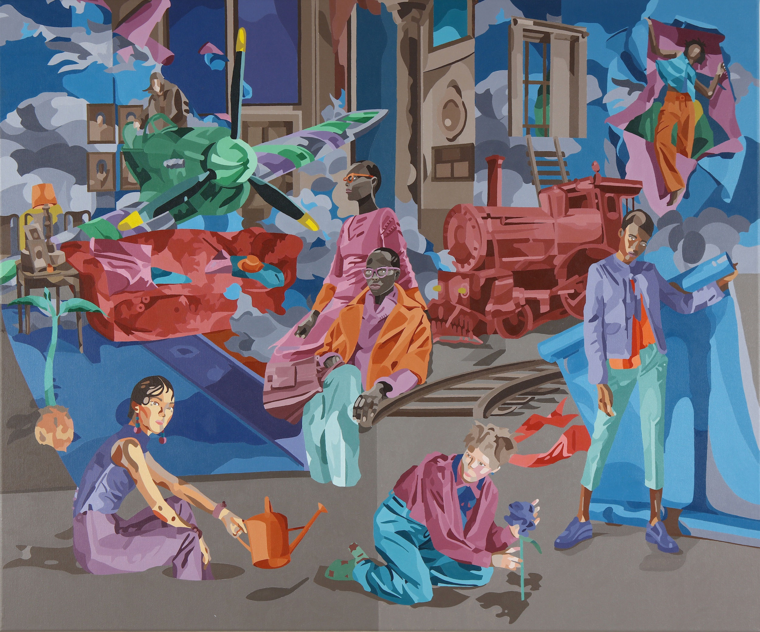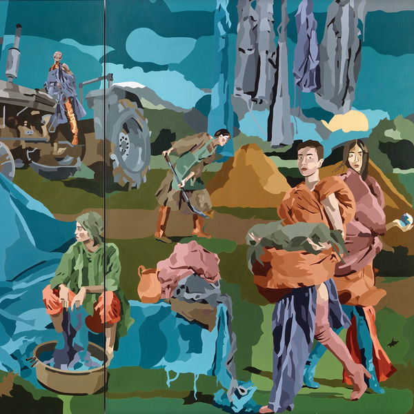 I’m working on a few smaller pieces at the moment and looking to play around more with the landscapes in my paintings. I’m interested in finding a way to incorporate some narratives from my childhood in my work (Chinese films and stories, the Studio Ghibli films) although I’m not sure what this will look like yet! Going forward I would like to start photographing people myself and painting from these photographs as well as from the collages I create using images from mass media.