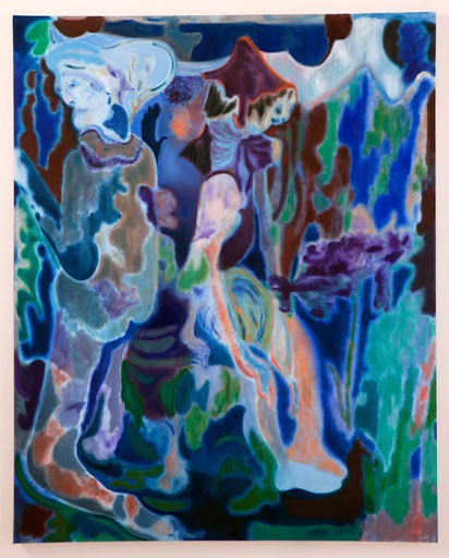 The figures in her incredible ethereal paintings, emerge from thin layers of oil paint Ruznic applies to the canvas, allowing the movement of the characters to coalesce with their supple environments. The shapes bled, bleed into one another. Borders are shifted and unclear. Ambiguous and beautiful.