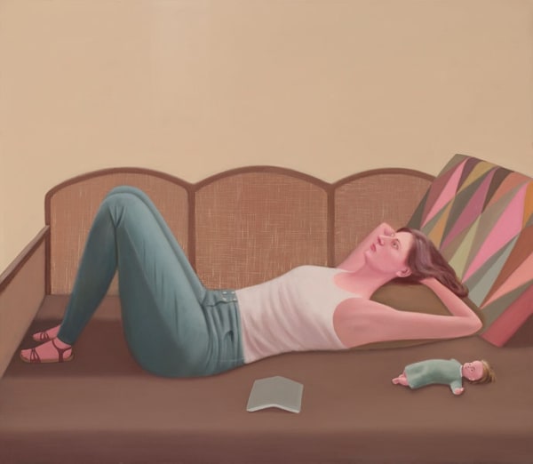 I painted The New Room in the second year of art school. It was a small work on board of a woman lying on a bed with a staircase and a lamp. It felt revealing and intimate. I think I have been repeating that painting ever since.