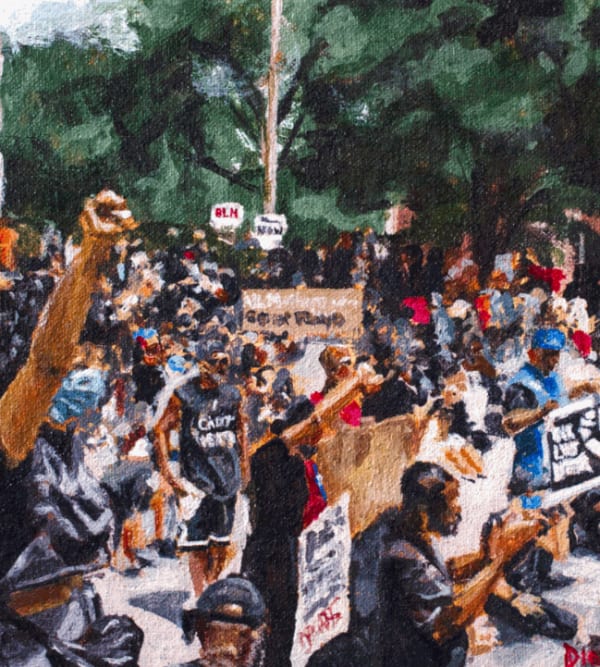I am a self-taught painter. Dance/drill teams, writing and sports were a part of my upbringing through high school before earning a degree in graphic design. I was always led by curiosity (still to this day) and could count on finding a sense of freedom through some form of creativity.