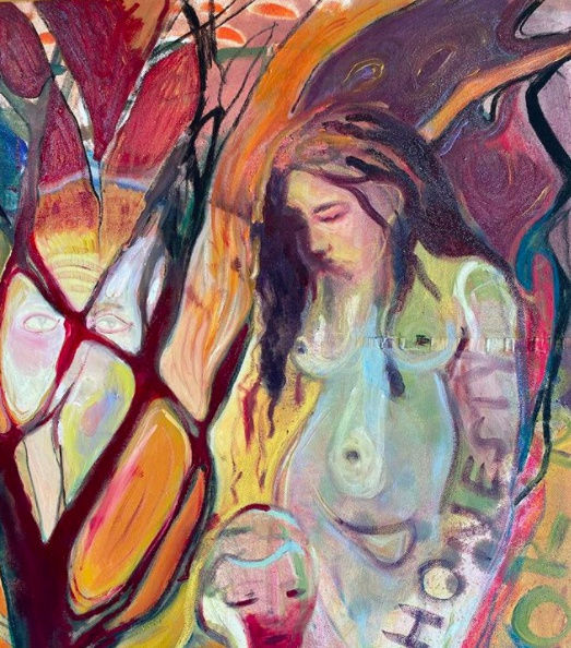 On memories, on feelings, on relationships of all sorts - interhuman relationships, love, hate, longing, looking back. The relationships between people and their environments, humans and the earth. Endings and beginnings, cycles. I just paint all the things that come with being. I see everything as one, so I aim to achieve a sense of wholeness and unity in my work. Painting is quite like meditating on certain subjects of life, but on a different level that's not as simply expressed verbally- hence the need to paint about it- its own language.