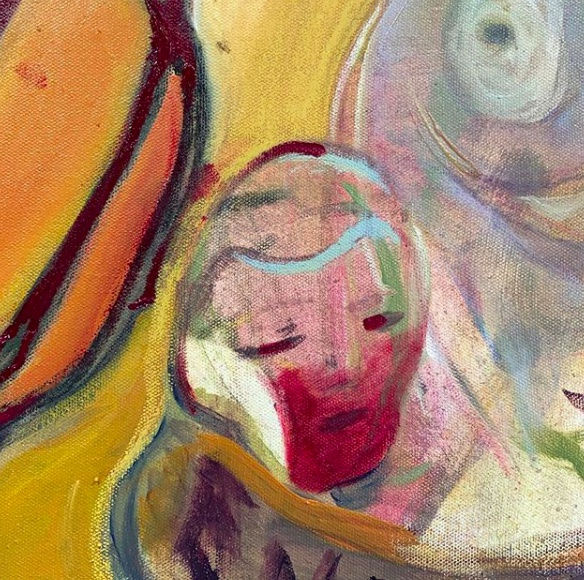 I want my work first and foremost to bring joy and curiosity to people. I'm interested in paint and these special moments it gives us- sometimes you just get these really special marks that make sense and really hit. I could look at them all day, from all different angles. They take me out of my head. I'm always searching for them. It is this child-like curiosity I love about painting, so I hope I can pass that on to the people that look at my things, so they get lost in the marks and get excited about exploring too, In the same way, that I've felt that in the making.My work is a lot of reflection.
